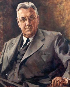John Edward BrownleeExtracted from Wikipedia, the free encyclopedia See John Brownlee, painting by L.T. Newton John Edward Brownlee (Port Ryerse, Lake Erie August 27, 1884 - July 15, 1961 Calgary) was a Canadian politician who was Premier of Alberta between 1925 and 1934. Brownlee became the lawyer for the United Farmers of Alberta (UFA) in the early part of the 20tieth century. When the UFA entered electoral politics and unexpectedly won the 1921 provincial election, he was recruited to serve in the new government as Attorney-General. In 1925, due to dissatisfaction with the leadership of Premier Herbert Greenfield, Brownlee was recruited to become the new Premier and UFA leader. Brownlee led the party to victory in the 1926 and 1930 provincial elections. Brownlee's government was successful in negotiating a degree of control of Alberta's natural resources from the federal government, an achievement that became historically significant when oil was discovered at Leduc in 1947. The Brownlee government faced its most serious challenge during the Great Depression when the dust bowl impoverished the province's largely agrarian population. The government's policies of continued fiscal restraint in the face of widespread demands for relief led to the UFA's increasing unpopularity. Albertans began to look to the radical solutions offered by Social Credit and the socialist Co-operative Commonwealth Federation. Brownlee's personal reputation was destroyed by a sex scandal in which he was sued for seduction of a young woman and found guilty. He resigned in July 1934. The UFA's economic policies as well as the scandalizing of Alberta's conservative population led to the party's downfall in the 1935 election when it failed to win one seat in the legislature. William Aberhart and his Social Credit Party swept the province. |