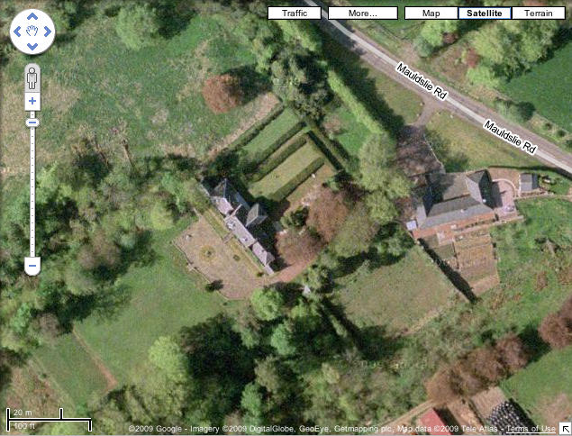 Below: Google Map showing proximity of Brownlee House, the Clyde River, Brownlee House and Brownlee Cottage, shown on at least one early map.