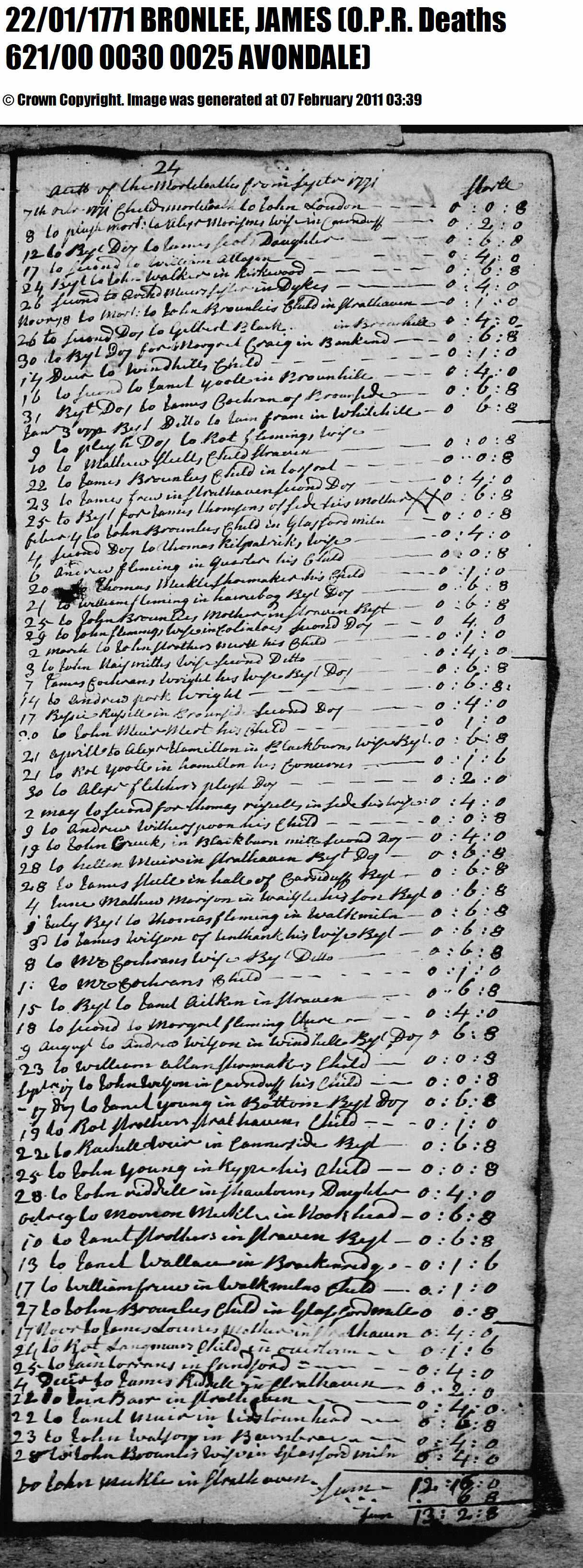 Brownlie Avondale Deaths Image 1771-1773 and Transcript