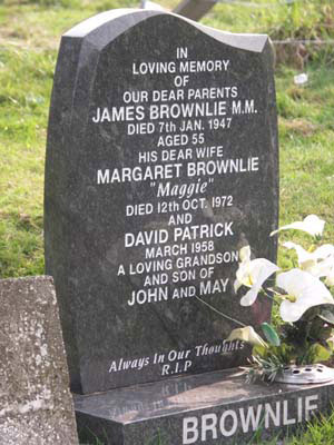 James Brownlie M.M. born c1892 died 7 January 1947. Married to Margaret (?) died 12th October 1972