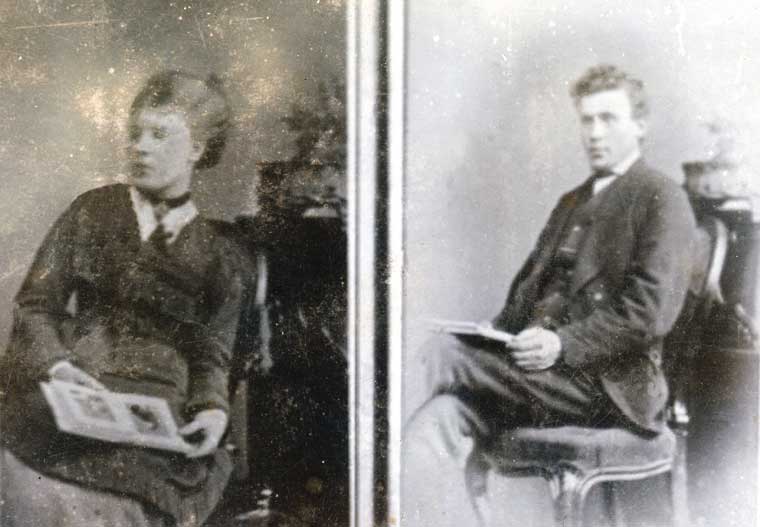 Catherine Brownlee was born 3 August 1854 in Edinburgh, Scotland and died 25 January 1934. James Brownlee was born 24 May 1846 at Wishaw, Lanarkshire Scotland and died 26 June 1892 in Sydney, Australia. This photograph may have been taken around the time of their marriage on 21 July 1874 at Partick East Presbyterian Church in Glasgow, Scotland by the Rev. John Gibson.