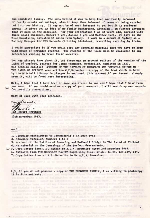 Letter from Ian Edward Brownlee to Martin Dale Armstrong 13 November 1983 page 2