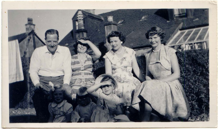 Photo 5. John Brownlie, Agnes Brownlie, Norma Brownlie, Isobel Brownlie and the grandchildren (1957)
