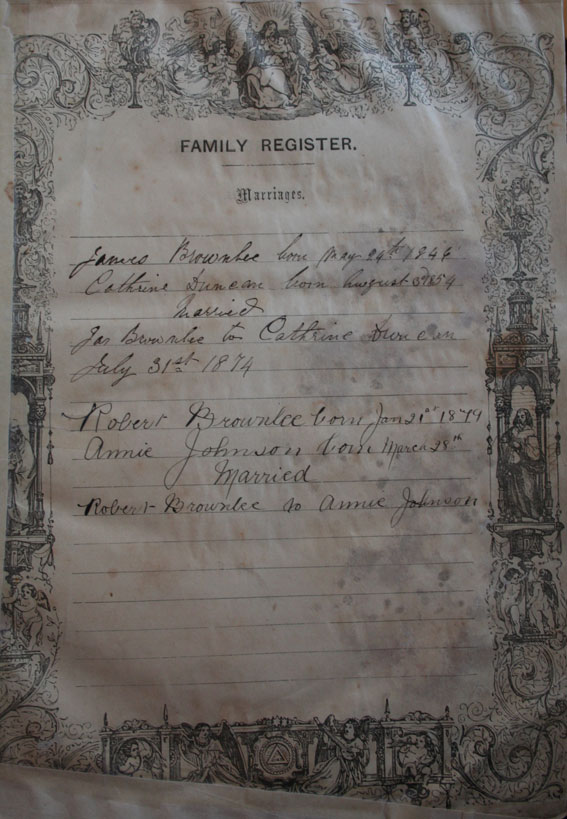 Circa 1874 James and Catherine Bell (Duncan) Brownlee married 1874 in Partick, Glasgow.